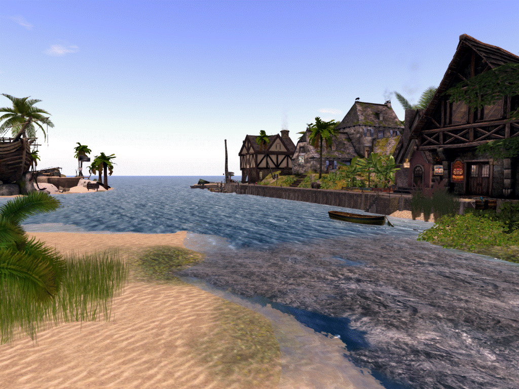 The more civilized inhabitants have set up a dock, and further inland, a charming country village where some of them live. There are also many jungle villages. There is a thriving market, and many workshops where the artisans toil to provide necessary equipment. A fertile valley provides the colony with food. There are extensive hunting grounds, some in the snowy north. A vast network of caves contains much ore of various types.